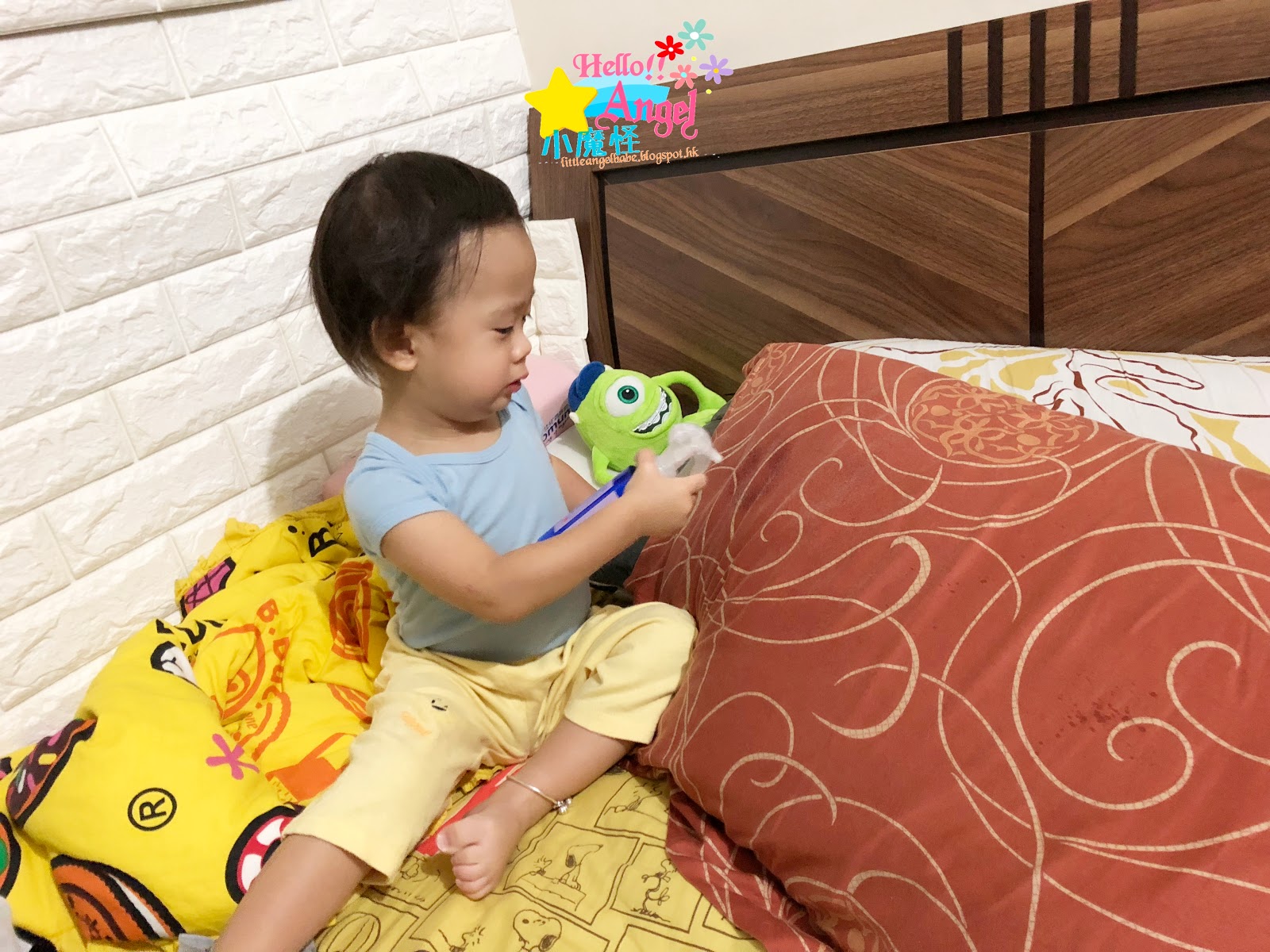 刷完牙,換埋衫拎埋飯盒,幫佢換埋片仲可以訓到咁